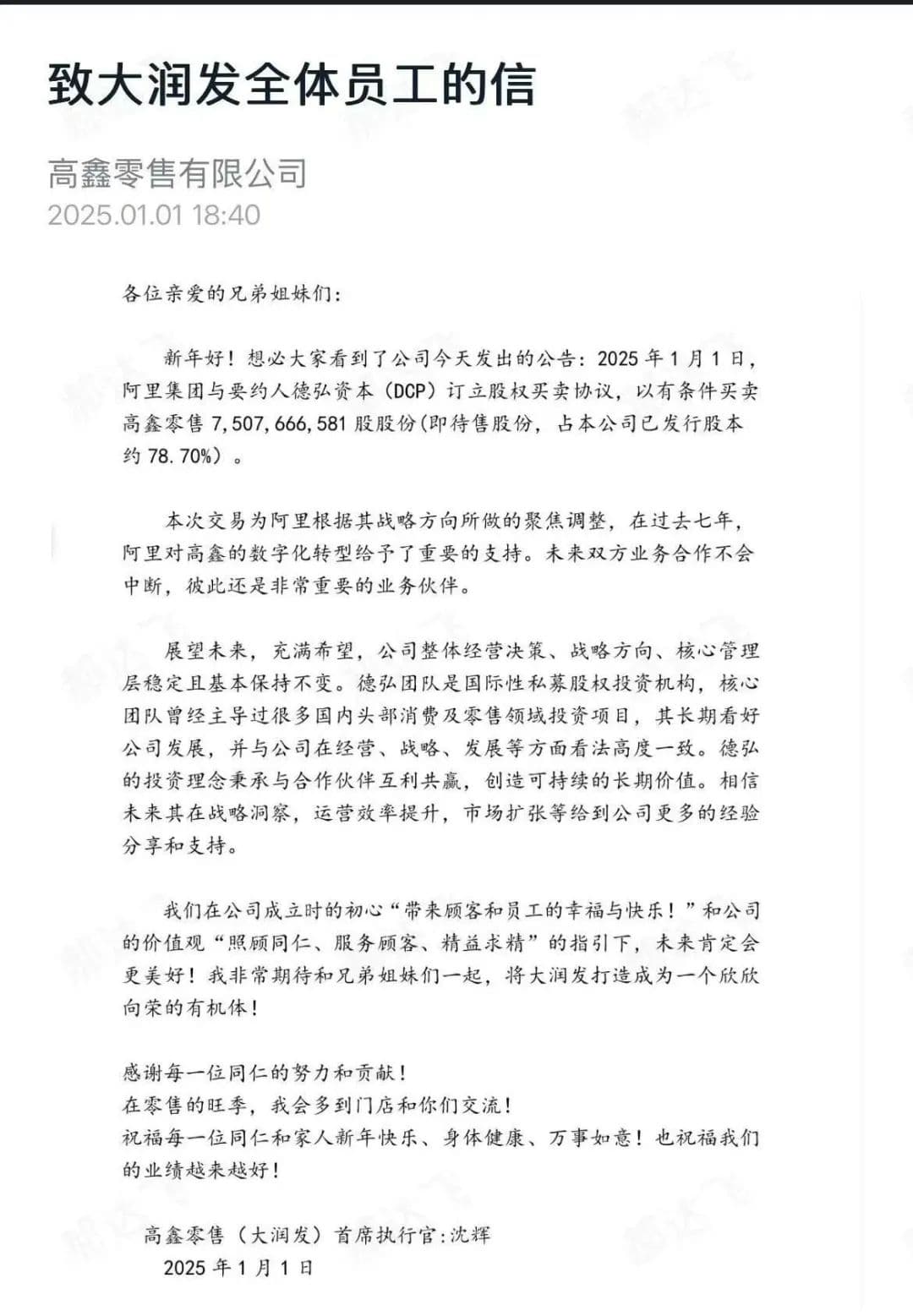 在2025年元旦的第一天,几度传出要被出售的大润发母公司高鑫零售终于被阿里卖了。