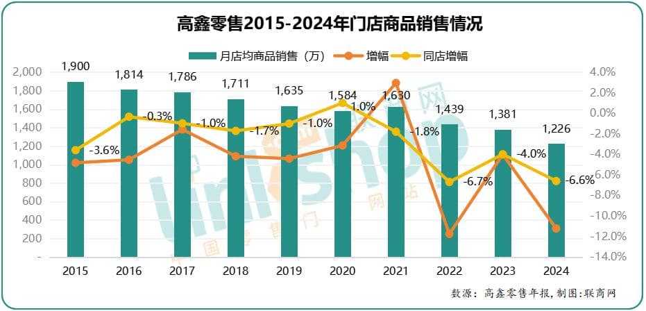 从店均上看,10年前,大润发月店均高达1900万,而10年后店均降到1226万,综合降幅近36%;而更能体现存量业务质量的同店增幅,近三年跌幅均超过4%。