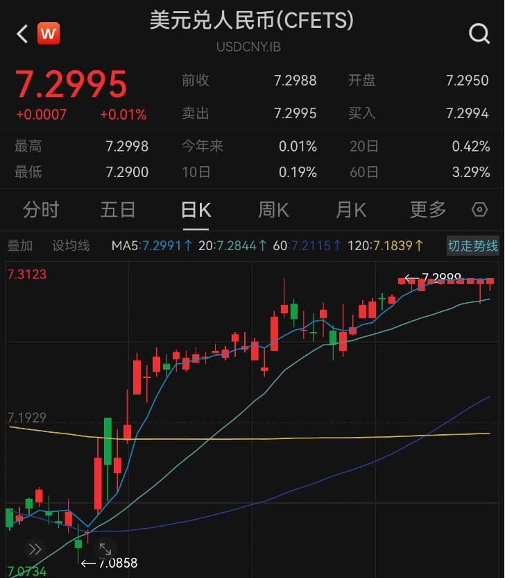 汇率市场已有所反应,近期在岸人民币汇率守住7.3关口,但离岸人民币汇率跌破7.3关口,并一度达到7.36,反映出一定的资金压力。