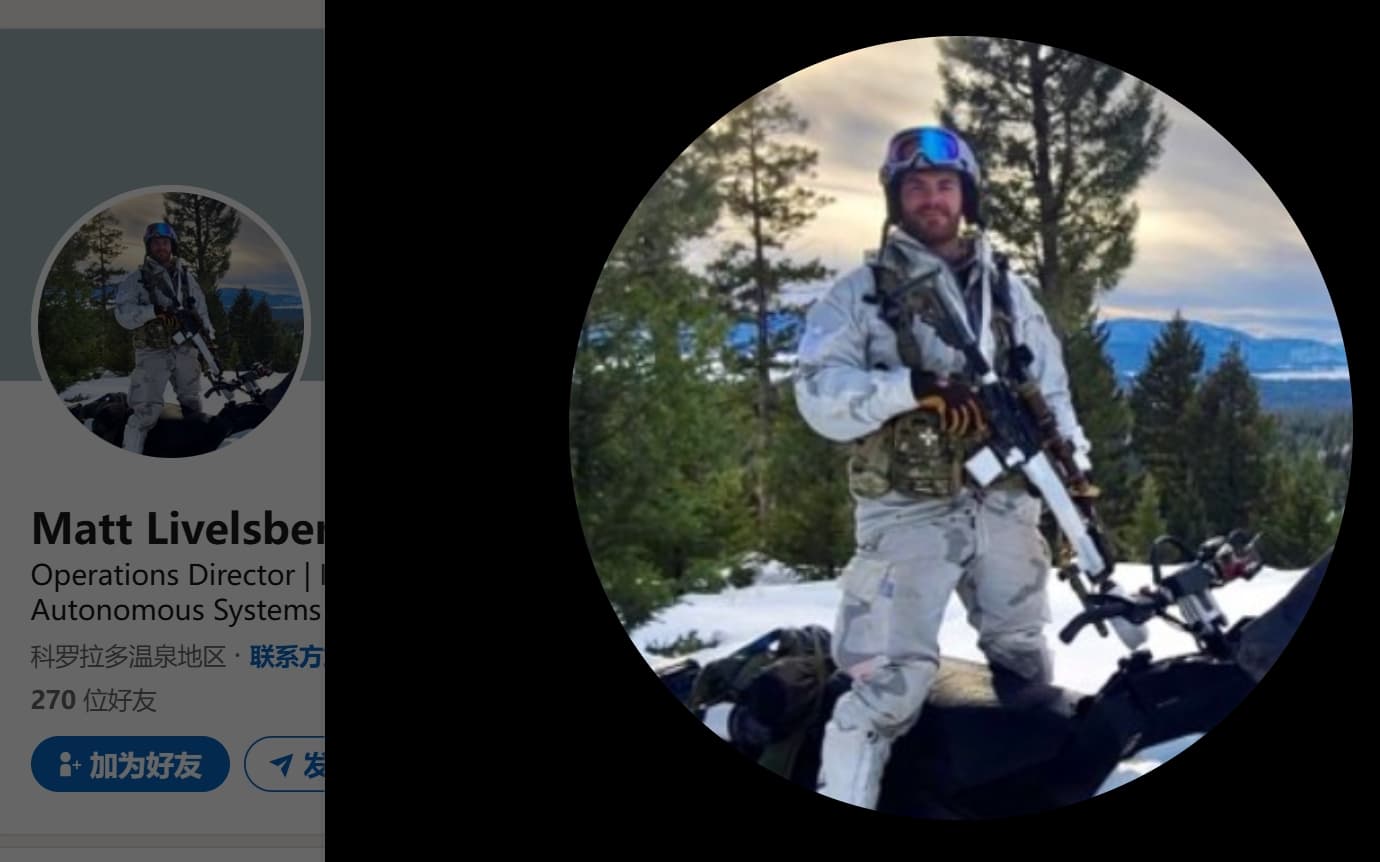 职场社交媒体资料显示,利维尔斯伯格是现役美国陆军特种部队军士长,最新的工作岗位是“远程和无人机系统经理”。