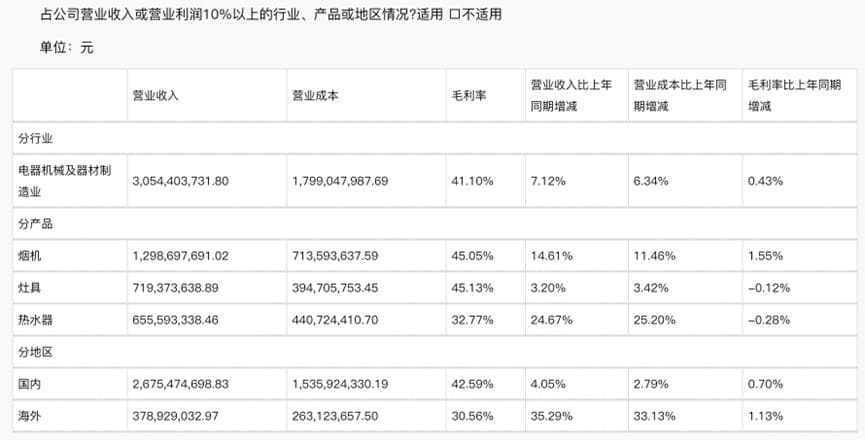 由于经营链条更长,目前厨电企业的海外渠道利润空间显著低于国内市场。财报显示,2024年上半年,华帝海外渠道的毛利率仅为30.56%,比国内市场低12.03个百分点。如果华帝继续深入涉足海外市场,那么公司的毛利率或将断崖式下跌。这或许是厨电企业不敢“All In”海外渠道的首要原因。
