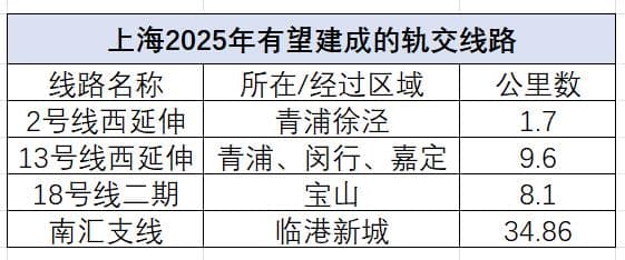 与此同时,还有多条备受关注的区域线,像嘉闵线、示范区线还有南汇支线等,据目前进度来看,2025年有望建成四条轨交。