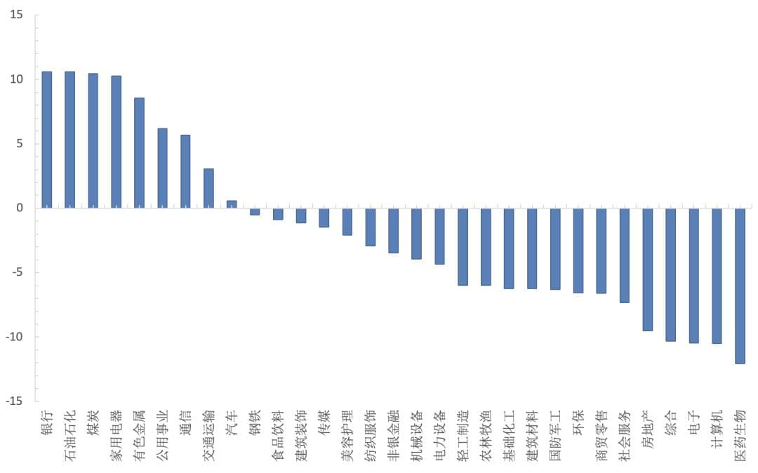 图:31个申万一级行业指数四季度涨跌幅;资料来源:wind,36氪