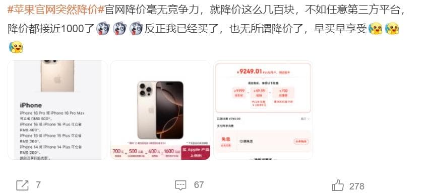 “你不买我不买,苹果还能降 800”,网友们之前的调侃居然成真了。