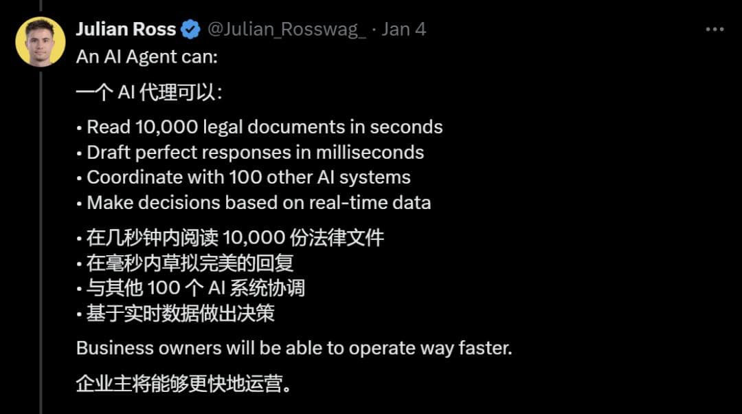 2025年,AI智能体将兴起,将重塑就业市场!多家AI企业高管表示2025年AI智能体将能胜任多种工作。