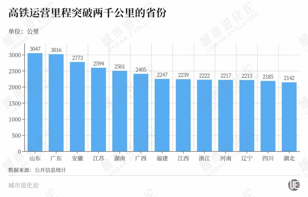 随着众多高铁新线开通,不少头部省份的高铁里程完成“千公里”数量级的新突破。