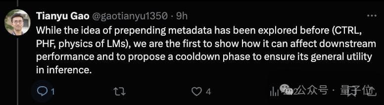 虽然之前元数据谈过很多,但一作高天宇表示,他们是第一个展示它如何影响下游性能,以及具体如何实践以确保推理中具备普遍实用性。
