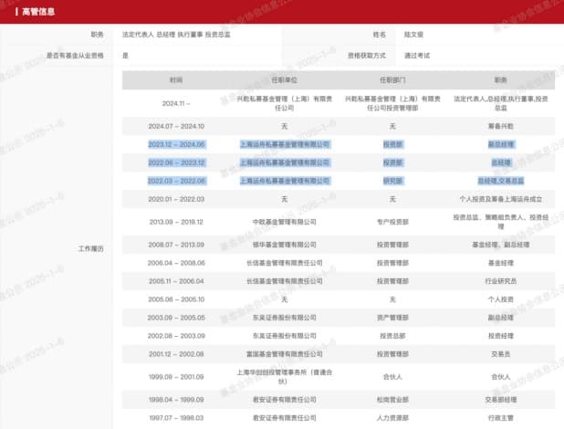 履历显示,陆文俊曾供职君安证券人力资源部、上海华创创投、富国基金、东吴证券、长信基金、银华基金、中欧基金等。