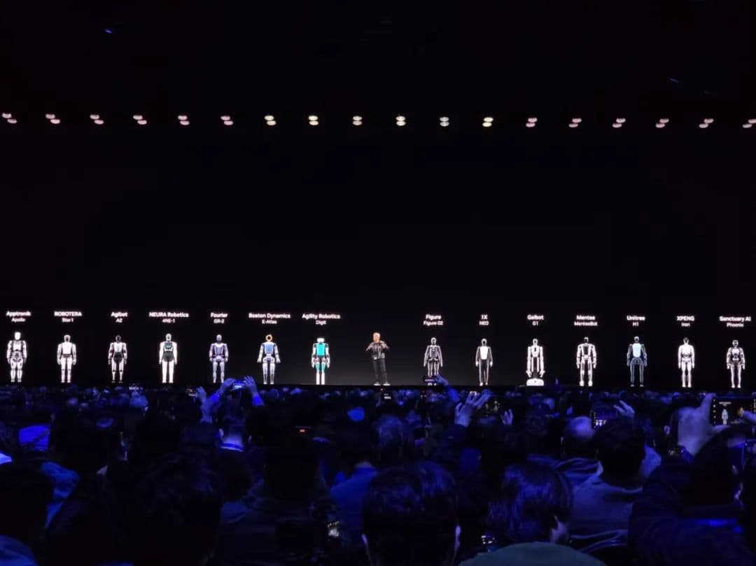 黄仁勋还现场公布了一些人形机器人、自动驾驶汽车合作厂商。其国内人形机器人合作伙伴有银河通用G1、宇树科技H1、小鹏“老铁”等,国内自动驾驶合作伙伴有比亚迪、理想、蔚来、小米、极氪等。