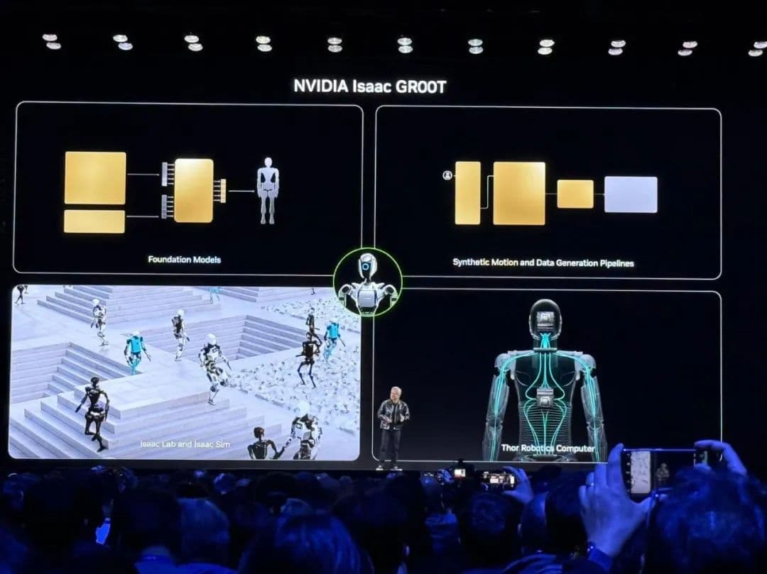 他判断在感知AI、生成式AI后,AI浪潮的下一站是代理型AI(Agentic AI),再之后是物理AI(Physical AI)。黄仁勋相信,机器人的ChatGPT时刻即将到来,而世界基础模型对于推进机器人和自动驾驶汽车的开发至关重要。