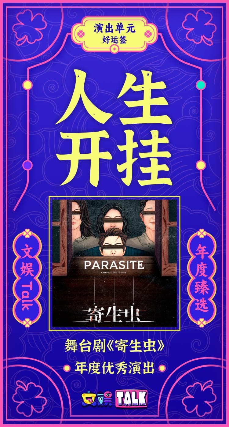 就像舞台剧《寄生虫》,在原版韩国电影的基础上做出了一些本土化落地处理。在去年的巡演中,这个舞台剧既有老牌话剧演员吴樾坐镇,又有年轻演员于朦胧、蒋依依加盟,实现了口碑与票房的有效融合,让更多人看到了这个故事力“魔幻现实主义”的戏剧张力。
