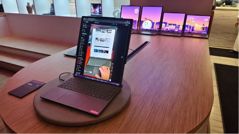 联想在CES上发布了ThinkBook Plus Gen 6,这款可量产卷轴屏AI PC在普通状态下,显示屏尺寸为14英寸,如果触碰按键或者手势操控,用户能将显示屏垂直延展至16.7英寸,便于修订文档、制作PPT等商务办公。