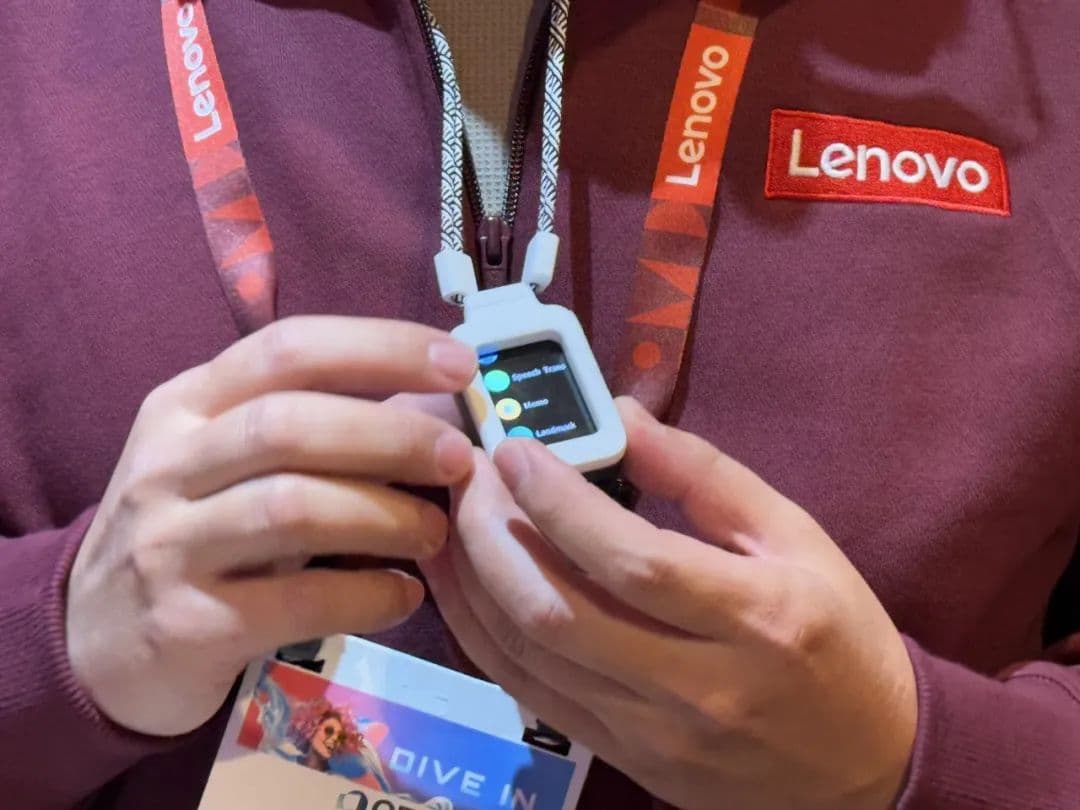 联想为热爱旅行的用户打造了一套智能可穿戴设备套装AI Travel Set,包含手环和吊坠。用户只需要语音交互就能提问、拍照,不方便放大声音的情况下,套装里也配备了耳机。