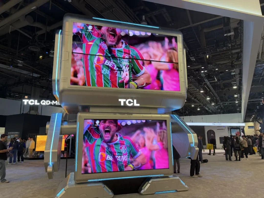 TCL展区最显眼的就是由两块大屏幕堆成的巨型机器人。