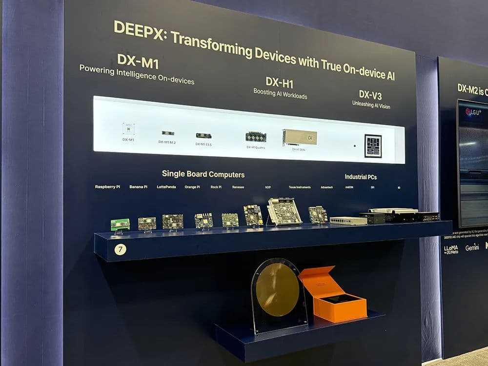 此外,多家AI芯片公司晒出了大语言模型解决方案,比如耐能、mobilint、DeepX都展示了能跑Transformer大模型的边缘端侧AI芯片方案。DeepX展出了一个专为机器人应用设计的超低功耗AI增强芯片DX-M1,AI算力达25TOPS。