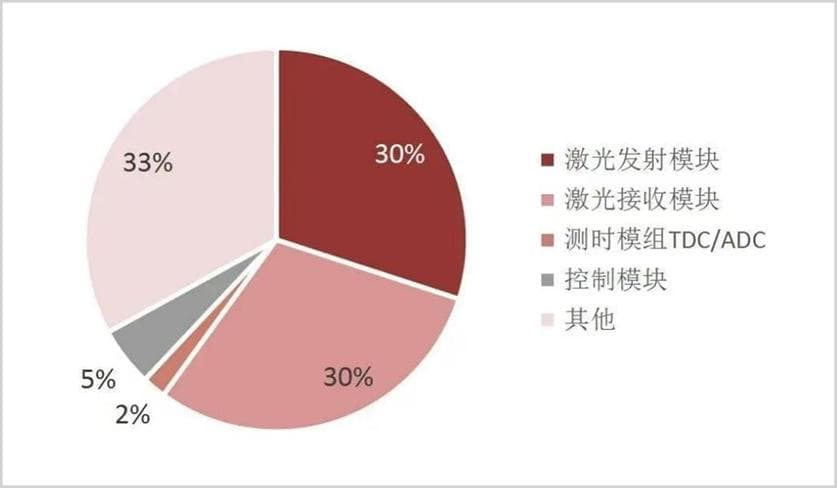 拆解激光雷达,其整机一般由发射模块、扫描模块、接收模块和控制模块组成,这四部分约占激光雷达整机成本的70%。