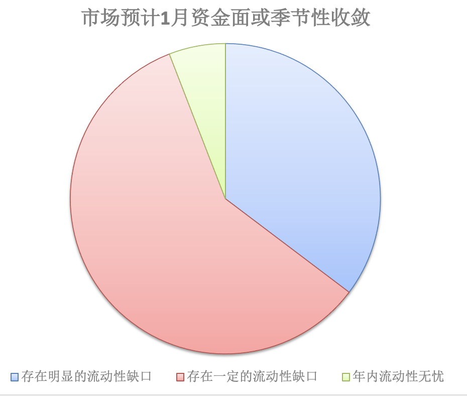在17家参与调查的市场机构中,6家认为存在明显的流动性缺口;10家认为可能存在一定的流动性缺口;1家认为流动性无忧。此外,一季度进入货币宽松窗口期,业内认为央行会选择在实施逆周期调节、引导社会预期、调控市场流动性的关键时点发力,实施降准。就时间窗口来看,不排除年初在对冲税期高峰、春节取现需求等因素下,央行降准呵护流动性平稳跨节的可能。