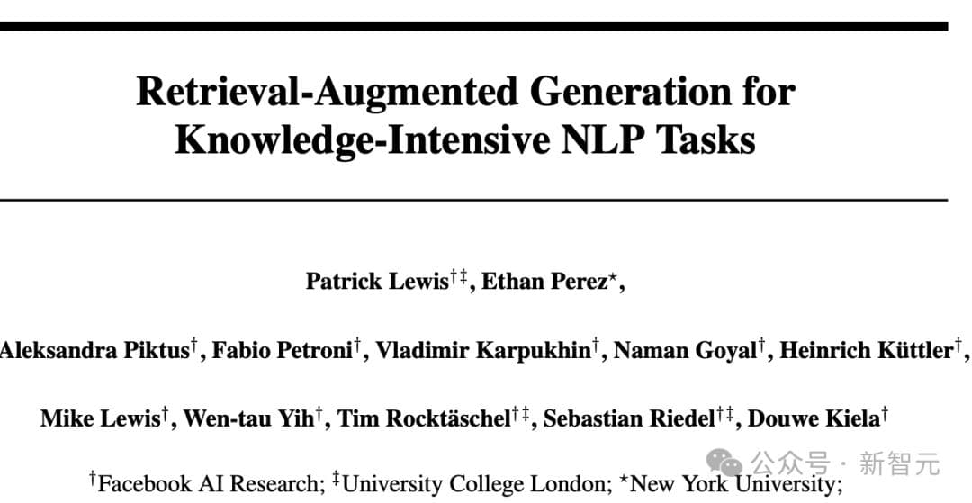 2020年,Meta首次提出RAG概念,结合预训练参数和非参数记忆用于语言生成,其中非参数记忆通过「预训练神经检索器」访问「维基百科的稠密向量」索引获得,结果在三个开放问答任务上都实现了最佳性能,并且生成的内容更具体、多样化和符合事实。