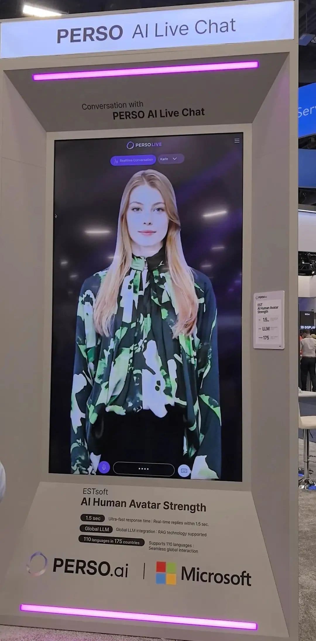 AI虚拟人最新进展,是PERSO.ai与微软合作推出了一款能即时交互的AI虚拟人大屏。通过大模型的调试,交互延时被控制在1.5秒。看来以后商场的“柜哥柜姐”们,要有压力了。