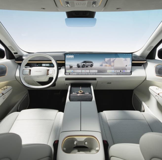 内饰部分,新车为用户提供了拂晓霞光、暖沙午阳、晓夜星河这三款内饰颜色以供选择。在材料运用上,采用了水晶质感装饰件、仿麂皮织物、仿麂皮 PU 以及 Nappa 真皮等,通过这些材料的搭配设计,营造出更加时尚的视觉效果。在配置方面,新车配备了 30 英寸 6K 一体式屏幕,搭配多功能方向盘和 12.66 英寸高清液晶仪表,同时还拥有 30 英寸 6K 后排娱乐屏。并且,其内置了 Orin-x/Thor 高阶智驾系统以及双 8295 座舱芯片,这些配置的组合进一步提升内饰的科技感和豪华感。在座椅布局上,新车采用的是 2+2+2 式的 6 座布局。