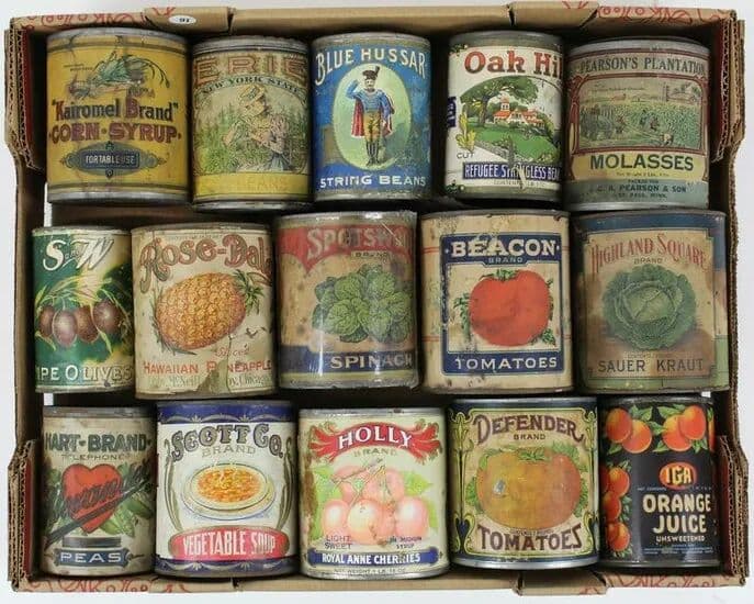 一些老罐头的瓶身。罐头不仅储存着食物,本身也是历史的一部分(图片来源:www.lot-art.com)