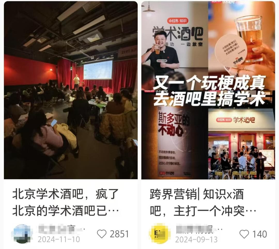还有学术酒吧,原本是国外研究人员的文化沙龙,被一些酒吧老板复制到国内,请大咖来讲课,一脚踩中了网红自习室的赛道。