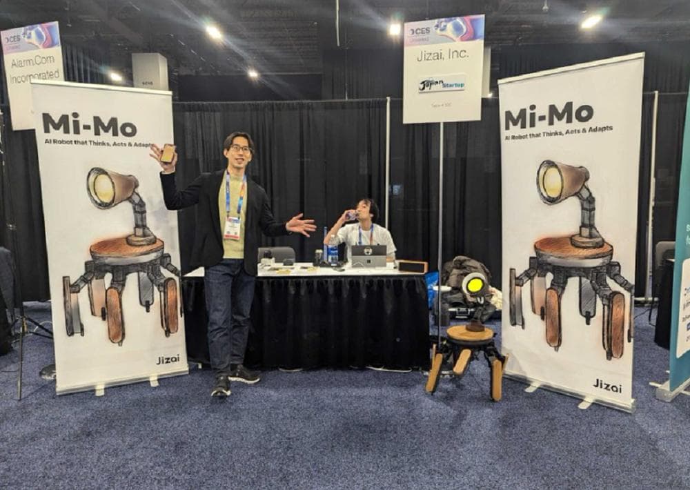 日本创企Jizai在CES现场带来了一款酷似皮克斯小台灯的通用AI机器人“Mi-Mo”(ミーモ)。