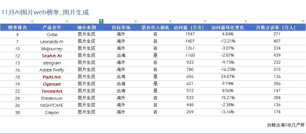 白鲸出海联合非凡产研发布第 5 期全球 AI 图片 web 榜单,并逐步添加图片 App 数据。