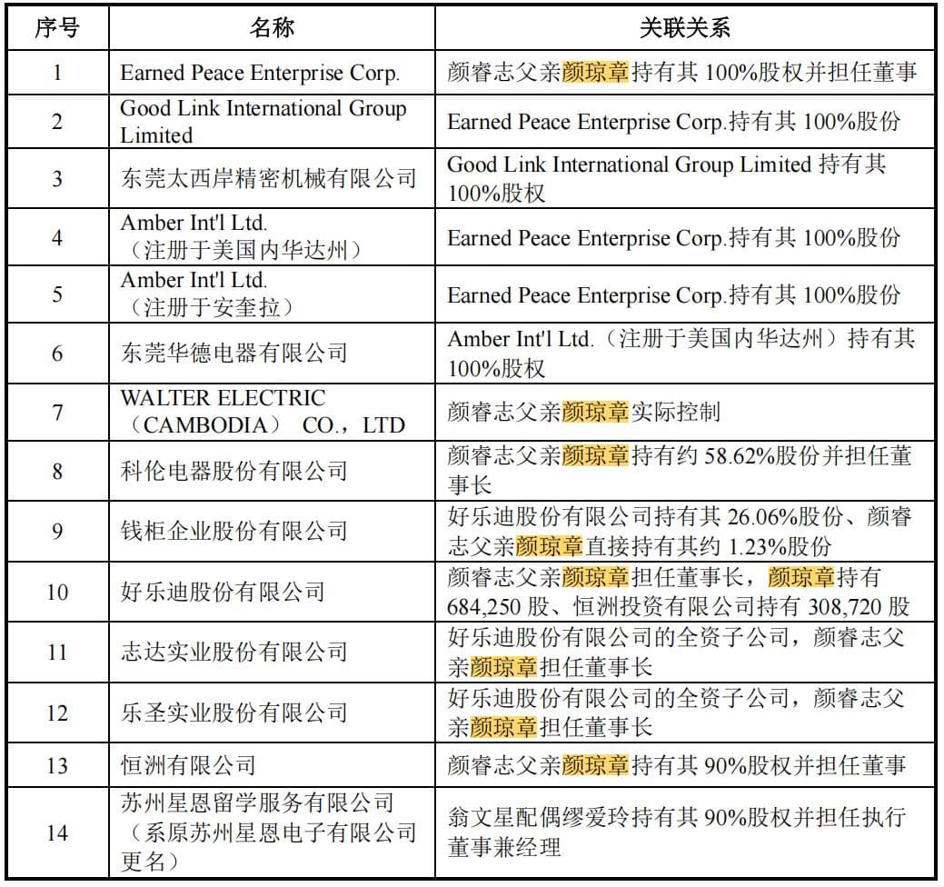 另据招股书,颜琼章对儿子的钧崴电子一直很关照,光是关联企业就有8家。