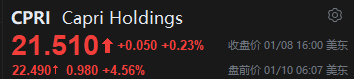2024年10月25日,Capri股价单日暴跌48.89%,因美国联邦法官否决了蔻驰母公司Tapestry和Capri的85亿美元合并提案。法官认为,合并将让市场失去“正面竞争”,损害消费者利益。