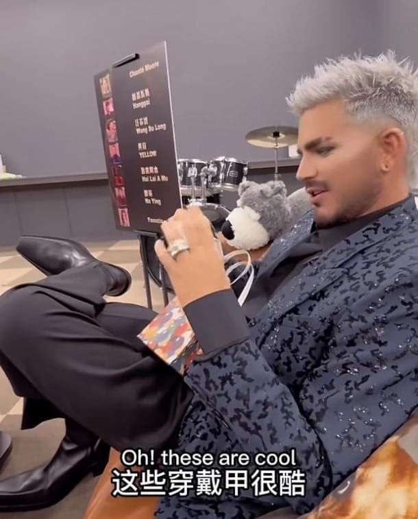 参加《歌手2024》的美国音乐圈顶流亚当在收到东海穿戴甲礼物后,连连夸赞“太酷了!”