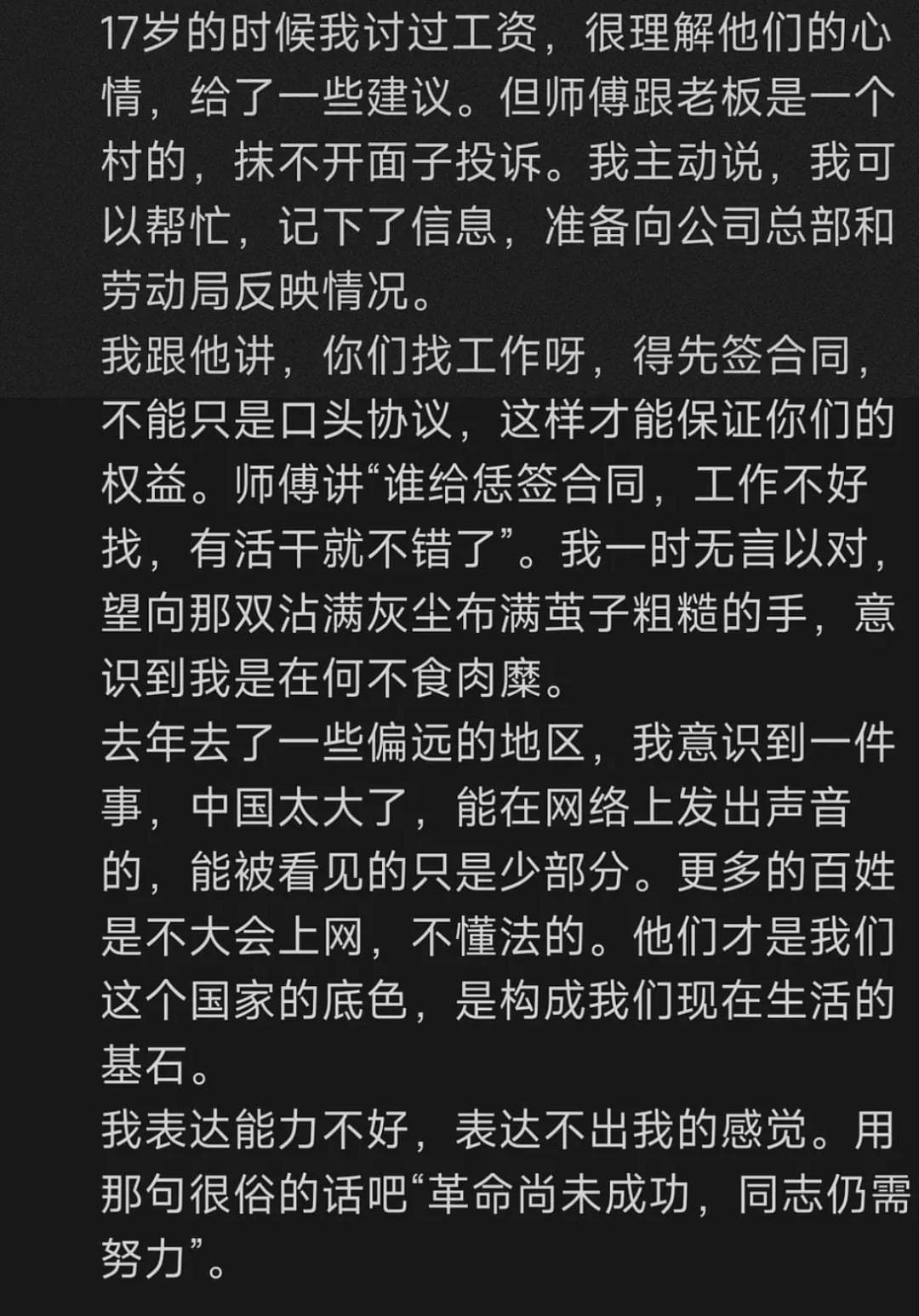 自己本就也是个大城市里的搬砖牛马,却在与送货师傅的交谈中,偶然得知对方被无良老板拖欠工资长达四个月之久。