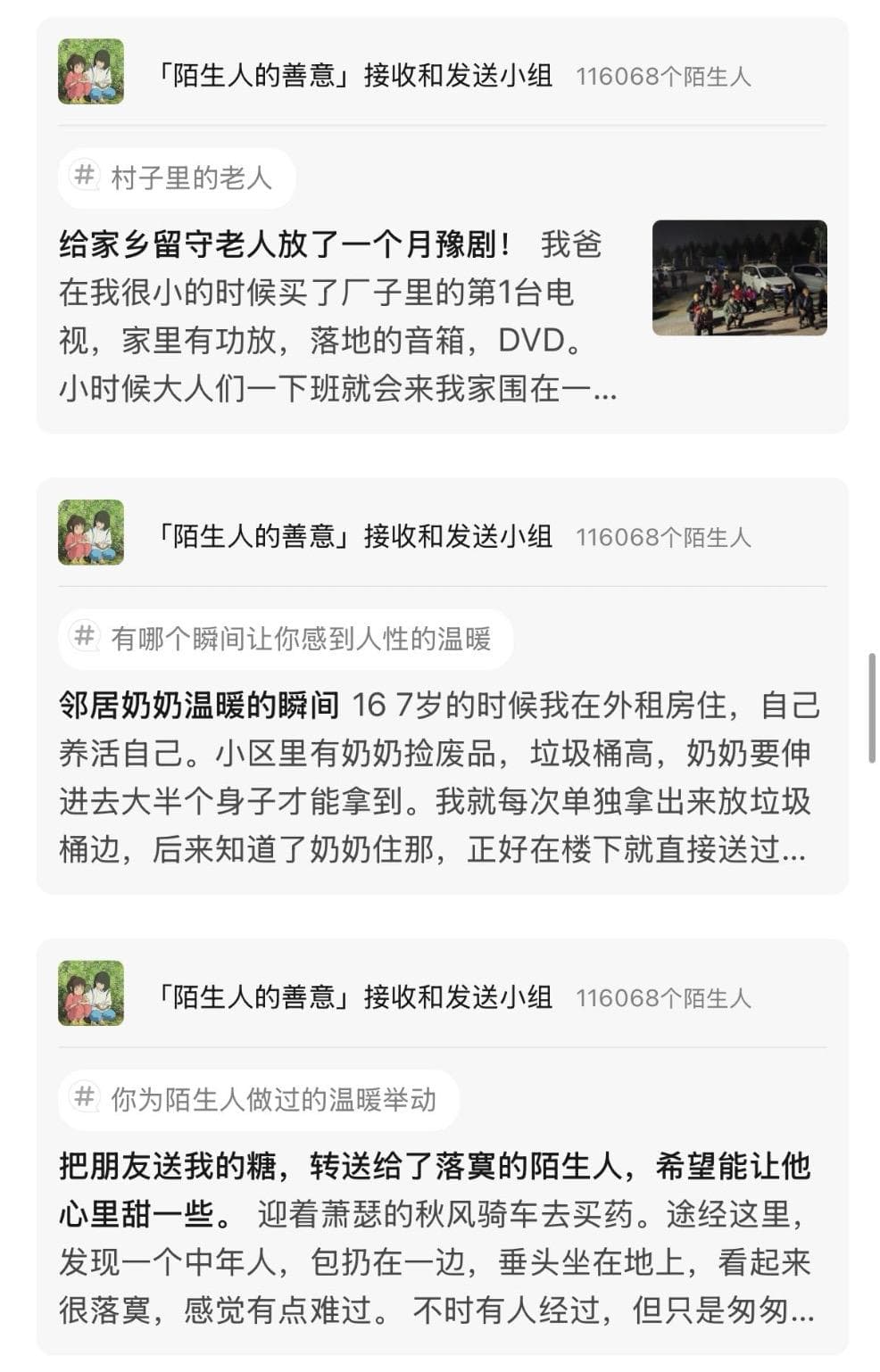 在这个小组中,你会看到善意的流动。曾经“发送”给别人的善意,有一天也会从其他人那里被“接收”回来。