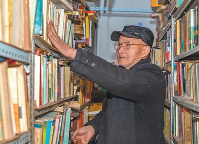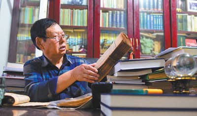 吉林省吉林市藏书家皮福生自1959年开始藏书,凡与吉林及东北文史有关的古旧图书都在他的收藏范围之内。图为皮福生在旧书里查找资料。