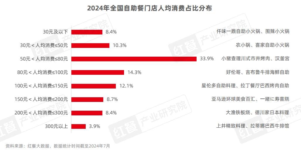 △根据红餐统计数据,百元以下自助占据大部分市场