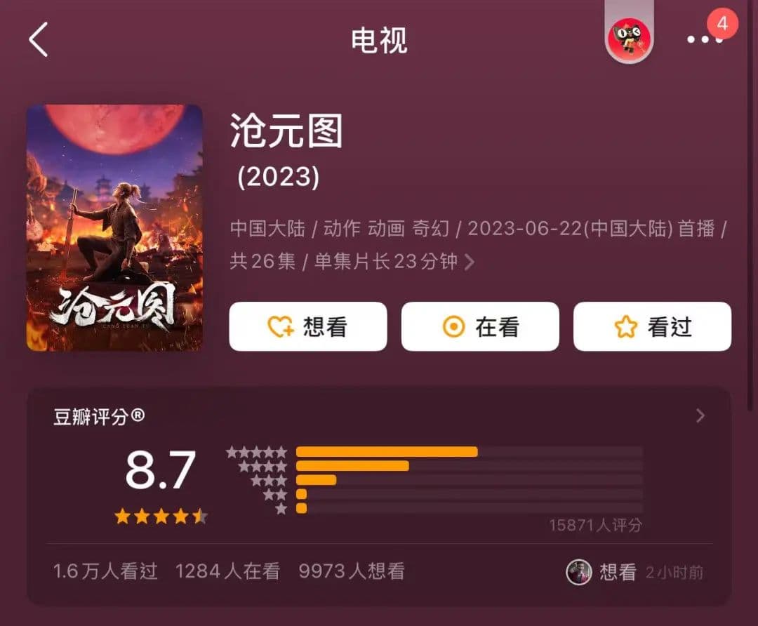 自从《一人之下》于2016年优酷上线,三季播放量合计超过50亿,第四季定档就冲上了微博热搜,不到一小时官博评论区5000多条留言。口碑的出圈为《异人之下》真人版奠定良好的基础,也为优酷深耕动漫赛道提振了信心。此后,《沧元图》一骑绝尘,目前豆瓣评分仍保持8.7高分。