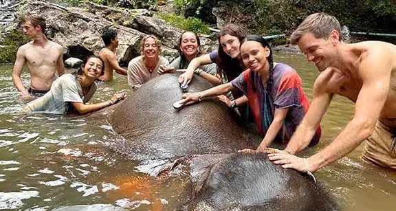 而圈养的大象则主要在各种以旅游业为导向的大象营地(elephant camps)里“工作”,其工作内容包括但不限于:供游客喂食、洗澡、骑乘、观赏,搭载游客进行丛林跋涉,提供动物表演等