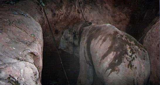 ↑在缅甸被落穴陷阱困住的小象
