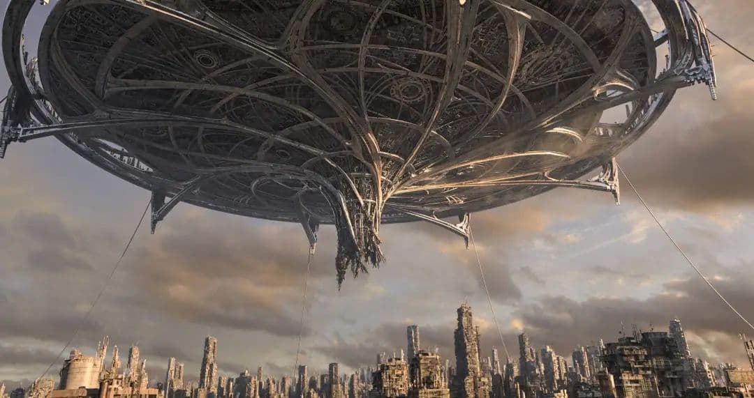天空上的城市就是扎雷姆 Zalem,图片来自《阿丽塔:战斗天使》剧照