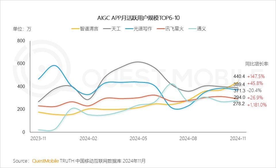 QuestMobile 2024年中国移动互联网“黑马应用”盘点:AIGC快速突围,手游、电动自行车等爆款不断……