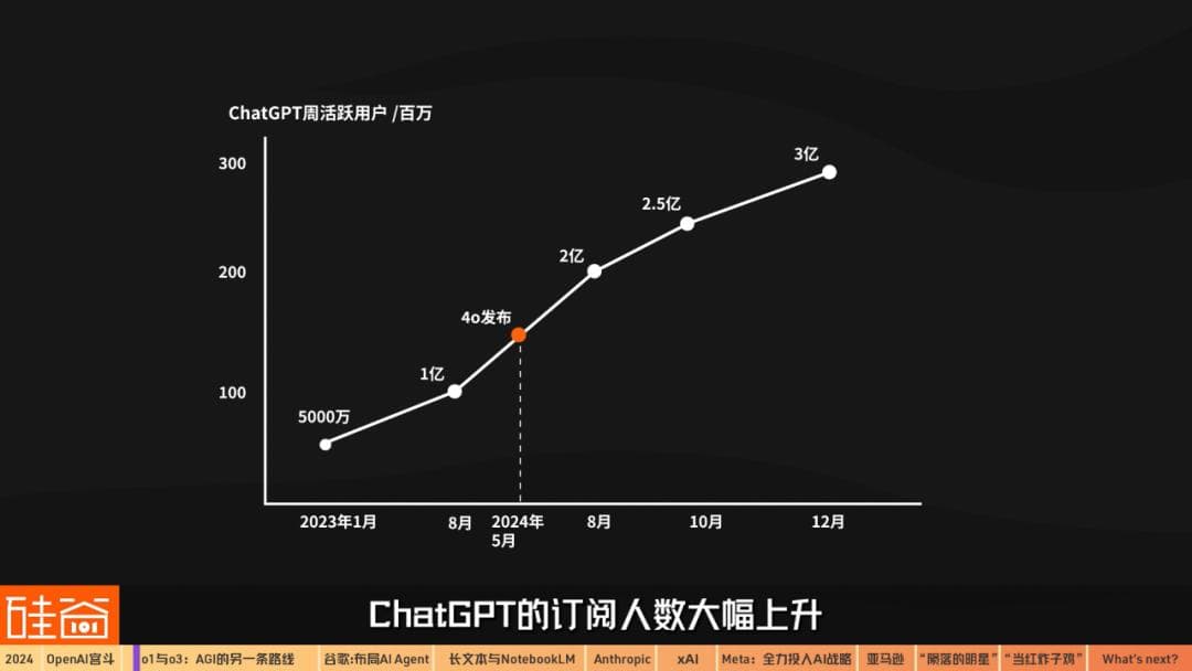 2024年12月,ChatGPT的周活跃用户已经超过3亿人。