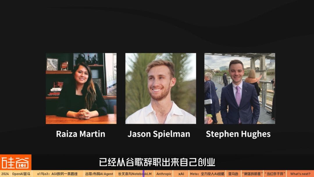 NotebookLM之前的核心团队负责人Raiza Martin,设计师Jason Spielman和核心工程师Stephen Hughes已经从谷歌辞职出来自己创业。