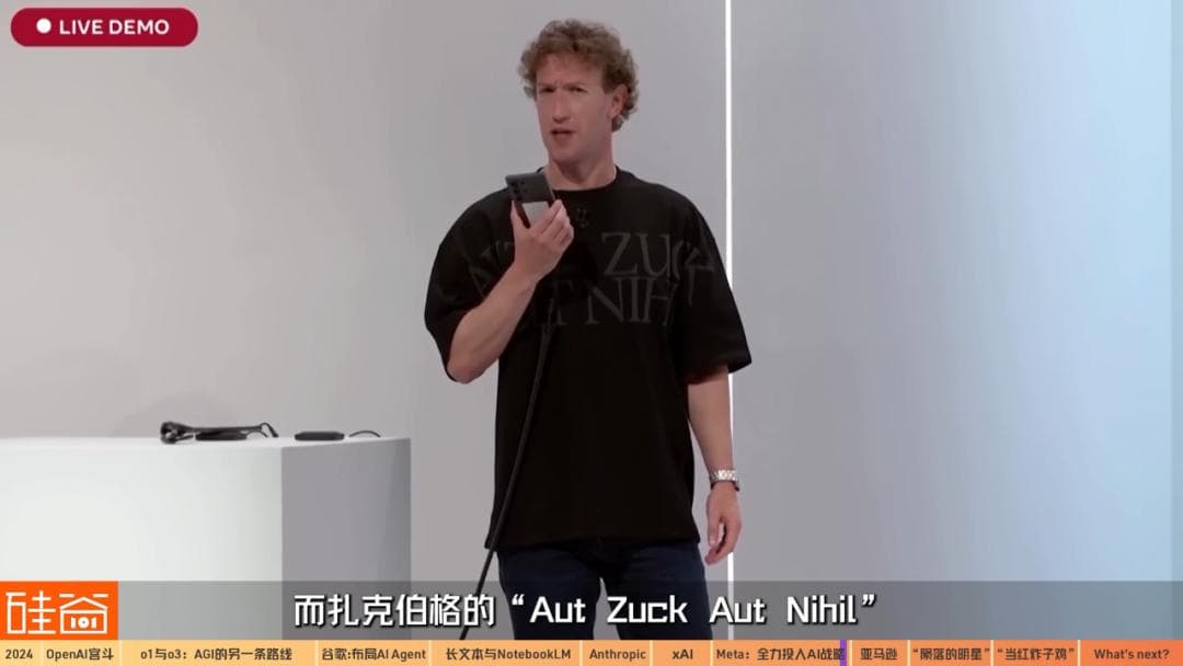 2024年9月,开始在形象和穿搭上大转型的扎克伯格穿了一件T-shirt,上面写着“Aut Zuck Aut Nihil”,这个细节被媒体捕捉到。