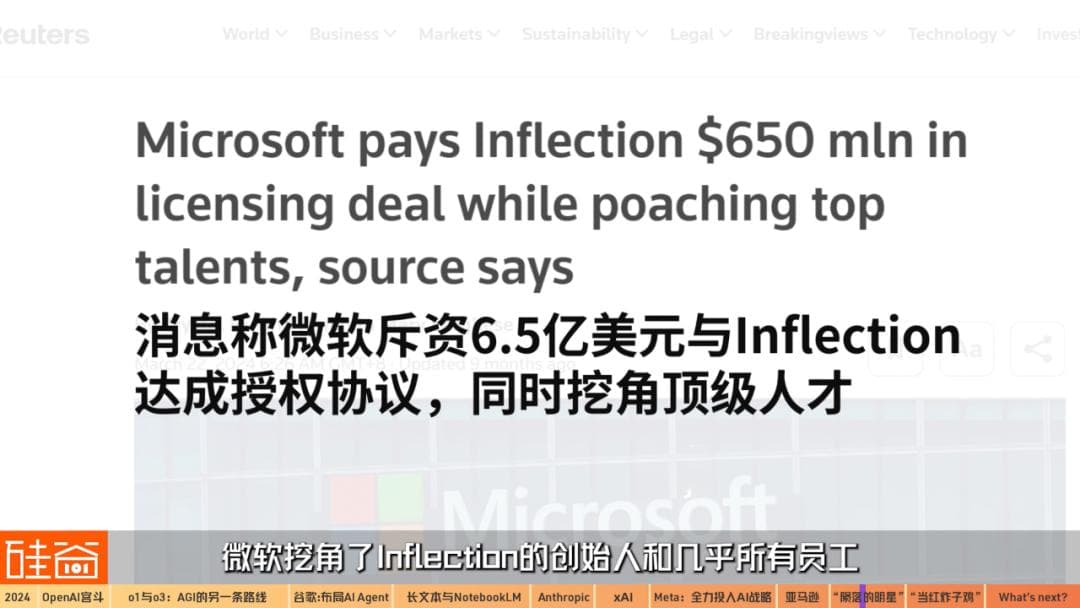 2024年3月,微软挖角了Inflection 的创始人和几乎所有员工,成立了一个新的消费者AI部门,并支付了约6.5亿美元购买其技术许可。