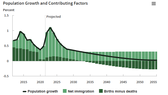 CBO指出,到其30年预估周期结束时,美国人口年增长率将放缓至微不足道的0.02%。