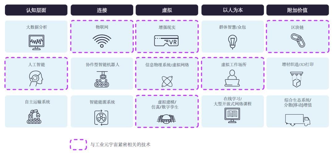 这五个维度概括了工业元宇宙转型的核心要素,旨在推动产业的持续创新和升级。