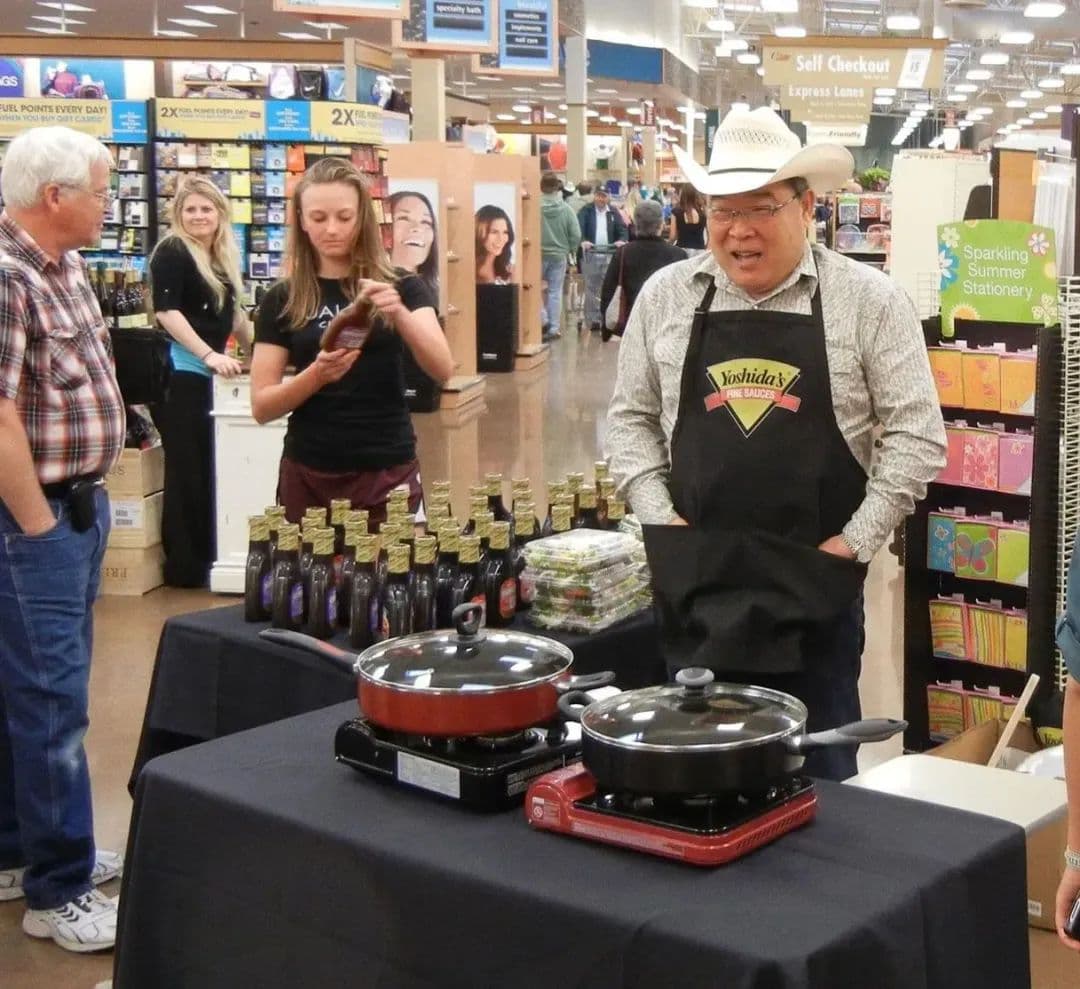 积极推销:吉田食品公司创始人兼首席执行官吉田润喜在Fred Meyer杂货店展示自己的酱料。图片来源:Mr. Yoshida's