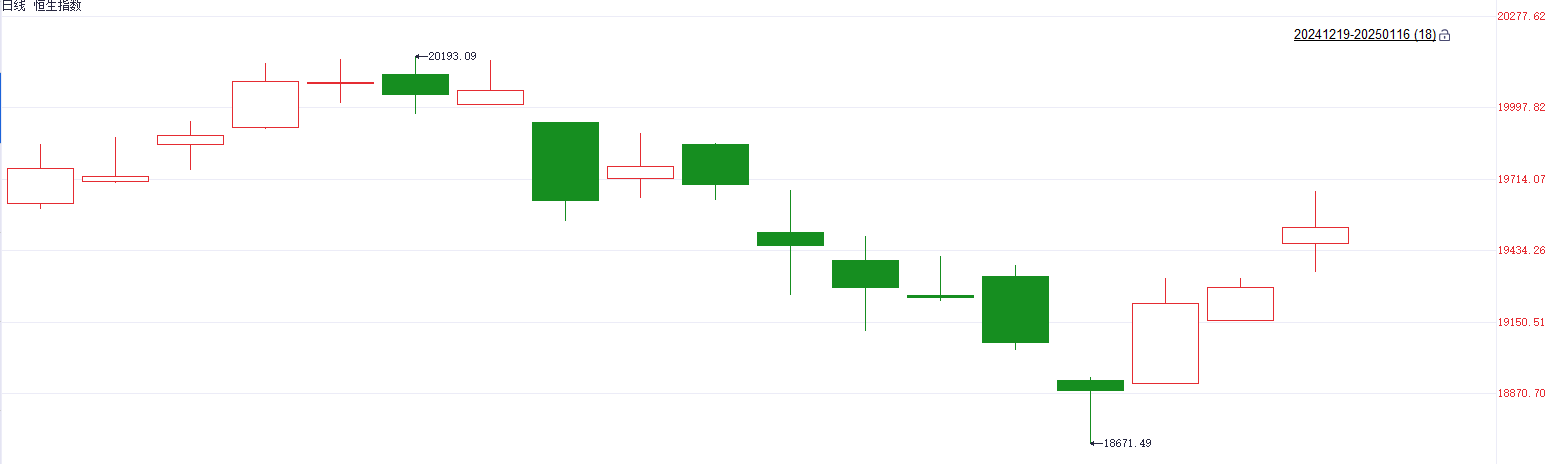 财联社1月16日讯(编辑 胡家荣)今日港股三大指数集体走强。截至收盘,恒生指数涨1.23%,报收19522.89点;科技指数涨1.23%,报收4417.37点;国企指数涨1.24%,报收7098.76点。