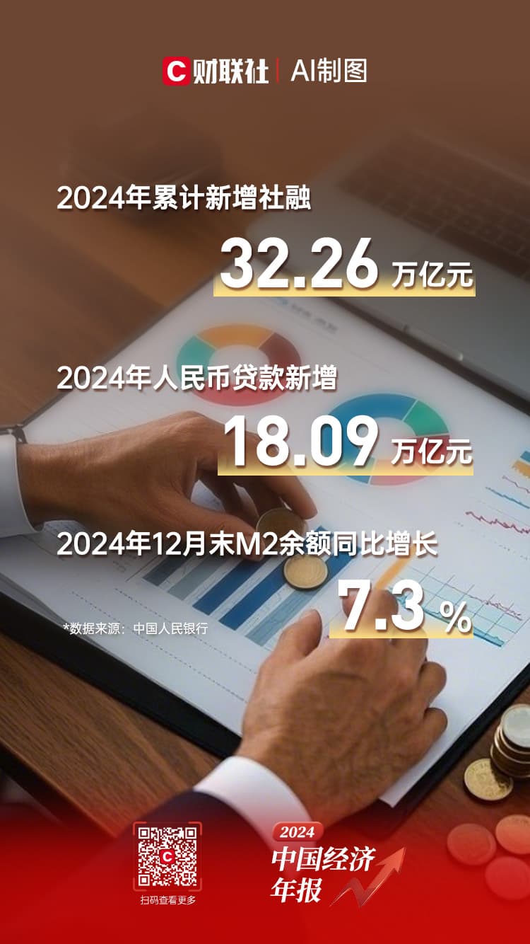 新增贷款:2024年,人民币贷款增加18.09万亿。
