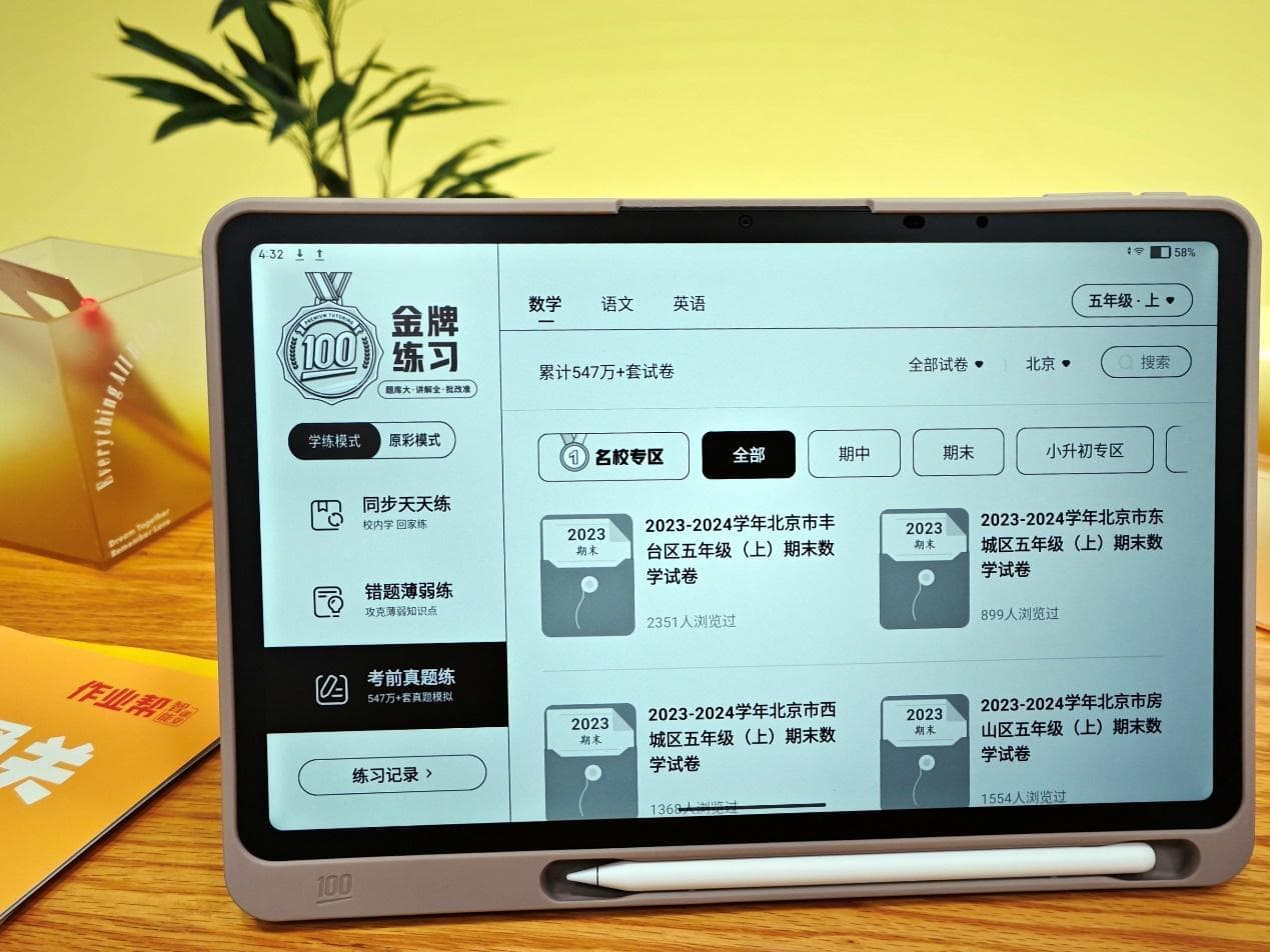 比如,仅在练习资源方面,作业帮学练机就内置了547万套真题试卷,以及支持296个教材版本的校内同步练习教辅资源。在学情大数据和AI的能力释放下,作业帮学练机体现出了细腻而灵活的精准度,可以根据学生的学情实现分层练习。